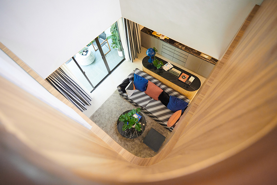 - ห้อง living room มีความเป็นส่วนตัว และมีห้องนอนชั้นล่างเพื่อรองรับครอบครัว พร้อมด้วย Space สำหรับสัตว์เลี้ยงแสนรัก