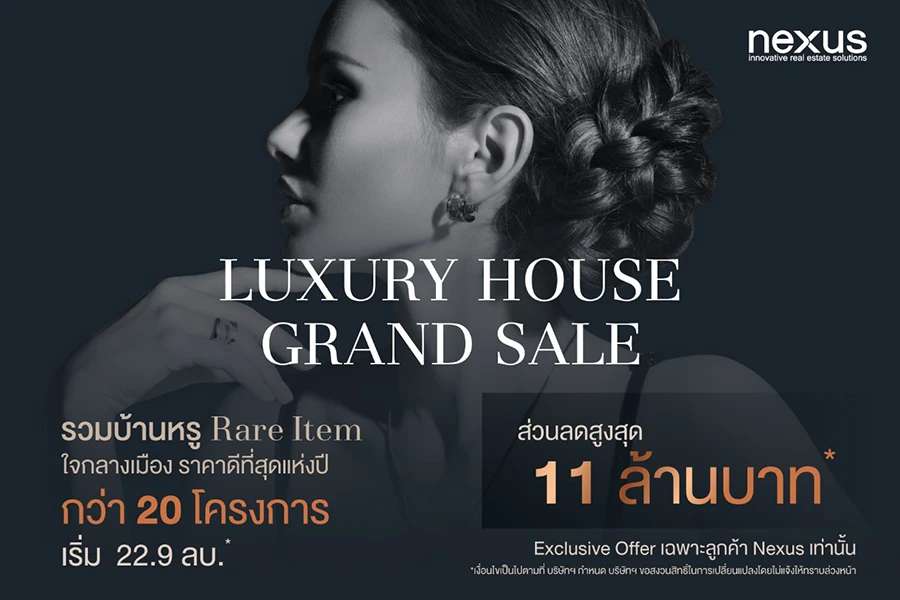 ปัจจุบันบ้านหรูใจกลางเมืองได้รับความสนใจจากกลุ่มลูกค้าเป็นอย่างมาก ยิ่งเมื่อเทียบราคาต่อตารางเมตรออกมาแล้ว ดูยังไงก็เป็นการลงทุนที่คุ้มค่ากว่าซื้อคอนโดระดับ Super Luxury ในทำเลเดียวกัน ดังนั้น วันนี้ เน็กซัส พรอพเพอร์ตี้ มาร์เก็ตติ้ง จึงได้รวบรวมบ้านหรู Rare Item มาไว้ในแคมเปญ "Luxury House Grand Sale" ซึ่งแน่นอนว่าได้ผ่านการคัดสรรมาแล้วว่าเต็มไปด้วยความคุ้มค่า ไม่ว่าจะเป็นด้านทำเล วัสดุ ฟังก์ชั่น ราคา หรือแม้แต่โปรโมชั่นแรงกล้า ที่ไม่ได้มีมาให้เห็นกันบ่อยๆ ในระดับบ้านซูเปอร์ลักชัวรี่ทำเลใจกลางเมืองแบบนี้ โดยมั่นใจว่าจะตอบโจทย์ทั้งผู้ซื้อ และนักลงทุนได้เป็นอย่างดี จะปักหมุดทำเลไหนกันบ้าง ตามไปดูกัน