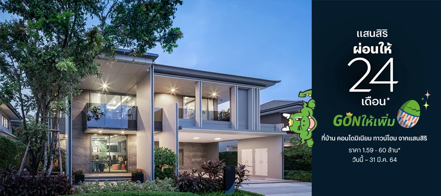 แสนสิริควงบาบีก้อน เบิ้ลโปรดีแบบจุกๆ ให้คุณมีบ้านง่ายขึ้น 2 เท่า แสนสิริผ่อนให้ 24 เดือน Gon ให้โปรโมชั่นพิเศษเพิ่มอีก ไม่ว่าจะเป็นทองมูลค่าสูงสุด 2 บาท, ส่วนลดเพิ่มพิเศษ, บัตรกำนัลเงินสด,ฟรีค่าส่วนกลางเพิ่ม, เครื่องใช้ไฟฟ้าครบชุด และเฟอร์นิเจอร์ครบเซ็ต* ที่บ้าน คอนโดมิเนียม ทาวน์โฮม จากแสนสิริ ราคาเริ่ม 1.59 - 60 ล้านบาท* วันนี้ - 31 มีนาคม 2564 นี้