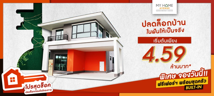 จองช้าหมด ปิดโครงการไม่รู้ด้วยนะ ลงทะเบียนรับเพิ่ม 10,000 บาท*www.myhome-avenue.comบ้านเดี่ยวฟังก์ชั่นจัดเต็ม 3 ห้องนอน 3 ห้องน้ำ ใกล้ทุกที่ ด้วยทางด่วน รามอินทรา-จตุโชติเพียง 5 นาทีเชื่อมสู่ใจกลางเมือง เปิดกว้างรับความสุข 360 องศา ด้วยเฉลียงและระเบียงภายนอก มีบ้านที่รักได้อย่างใจฝัน เริ่ม 4.59 ลบ.*