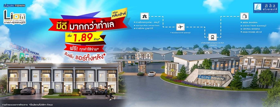 Lalin Town Lio BLISS บางนา - ศรีวารีน้อย มีดีมากกว่าทำเล!! ฟรี* ทุกค่าใช้จ่าย รับเพิ่ม* แอร์ทั้งหลัง เฟสใหม่! ทาวน์โฮม 4 ห้องนอน 2 จอดรถในร่ม ตอบโจทย์ทุกไลฟ์สไตล์ พร้อมคลับเฮ้าส์ และสวนขนาดใหญ่ เริ่ม 1.89 ล้าน* กู้เต็ม 100%*