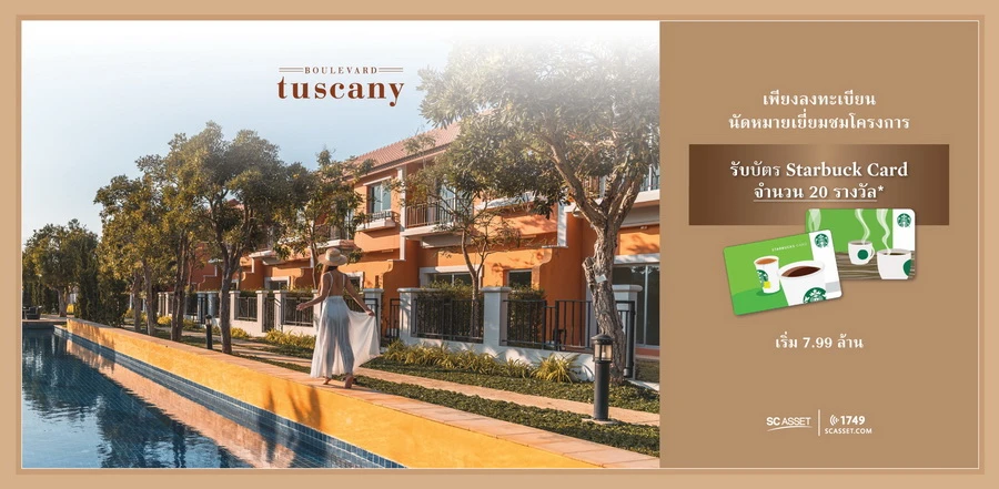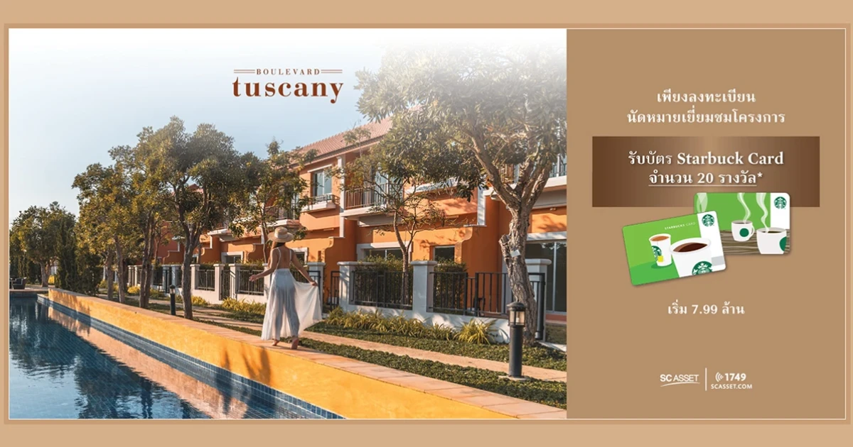 บริษัท เอสซี แอสเสท คอร์ปอเรชั่น จำกัด (มหาชน) ผู้พัฒนาอสังหาริมทรัพย์ชั้นนำ และ ส่งมอบ Living Solutions เพื่อทุกเช้าที่ดี จัดโปรพิเศษ ต้อนรับซัมเมอร์ ที่ โครงการ บูเลอวาร์ด ทัสคานี ชะอำ-หัวหิน (Boulevard Tuscany Cha Am-Hua Hin) เปิดจองบ้านตากอากาศติดทะเล พร้อม Pool Access ทุกหลัง ราคาพิเศษ 6.99 ล้านบาท* เพียงจองภายในเดือนเมษายน 2564 นี้ มอบส่วนลดเพิ่มอีก 50,000 บาท