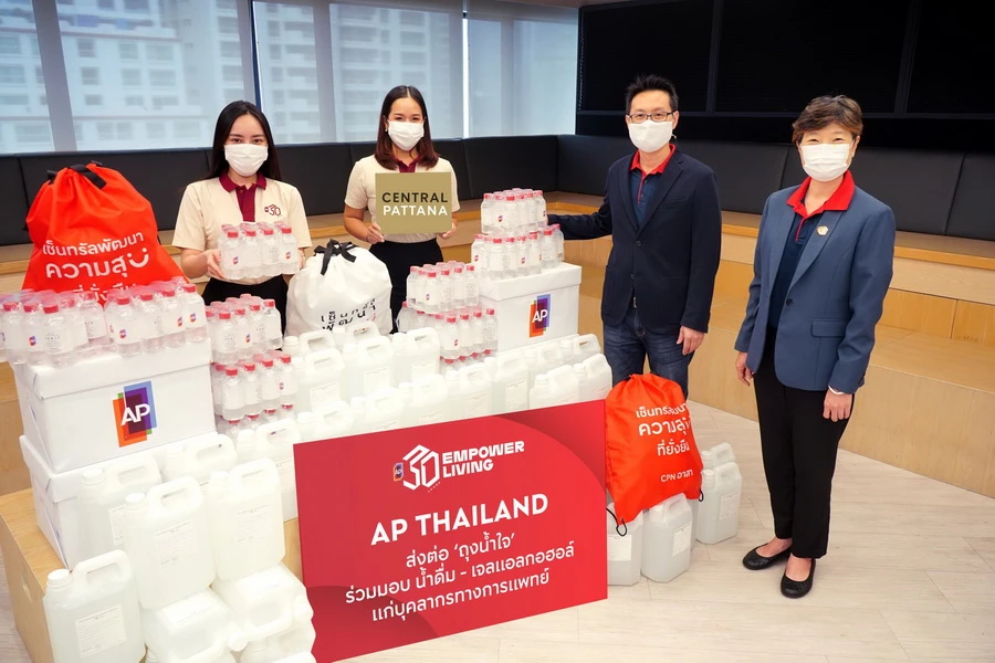 บริษัท เอพี (ไทยแลนด์) จำกัด (มหาชน) ผู้นำด้านการพัฒนาอสังหาริมทรัพย์ ภายใต้พันธกิจ 'EMPOWER LIVING' นำโดย นายประจักษ์ ประภามณฑล ผู้ช่วยกรรมการผู้อำนวยการ สายงานธุรกิจคอนโดมิเนียม และ นางสาวทิพวรรณ ศิริคูณ ผู้ช่วยกรรมการผู้อำนวยการ สายงานทรัพยากรบุคคล และพนักงานจิตอาสาของเอพี ไทยแลนด์ ร่วมผนึกพลังพันธมิตร บมจ. เซ็นทรัลพัฒนา จำกัด (มหาชน) (ซีพีเอ็น) ส่งมอบน้ำดื่มเอพี 4,200 ขวด และเจลแอลกอฮอล์ปริมาณ 500 ลิตร ในโครงการ ALL FOR HEROES ที่จัดต่อเนื่องเป็นปีที่สอง
