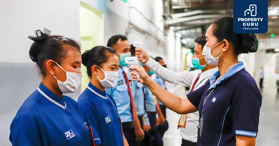 ตรวจวัดอุณหภูมิผู้ใช้อาคารทุกคนก่อนขึ้นอาคาร และงดการให้เข้าอาคารหากอุณหภูมิเกิน 37.5 C ขณะเดียวกันเจ้าหน้าที่ทุกคนต้องได้รับการตรวจวัดอุณหภูมิก่อนการปฏิบัติงานและต้องไม่เกิน 37.5 C เช่นเดียวกัน