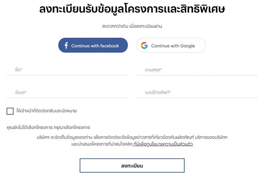 ลงทะเบียนรับข้อมูลโครงการและสิทธิพิเศษได้ที่ลิงก์ด้านล่าง