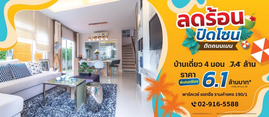 ลดร้อน ปิดโซน พาร์คเวย์ แอทอีช รามคำแหง 190/1 บ้านเดี่ยว 4 นอน ติดถนนเมน ราคาพิเศษเพียง 6.1 ล้านบาท