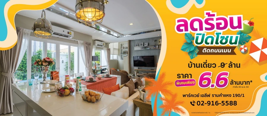 ลดร้อน ปิดโซน พาร์คเวย์ เอลีฟ รามคำแหง 190/1 บ้านเดี่ยว 4 นอน ติดถนนเมน ราคาพิเศษเพียง 6.6 ล้านบาท