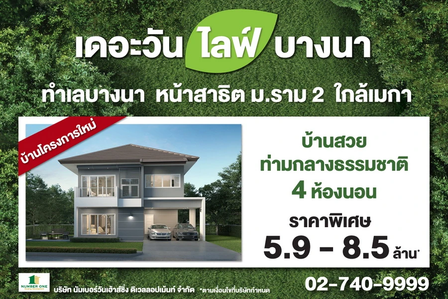 บริษัท นัมเบอร์วันเฮ้าส์ซิ่ง ดิเวลลอปเม้นท์ จำกัด เจ้าตลาดอสังหาริมทรัพย์คุณภาพย่านบางนา เปิดจองบ้านโครงการใหม่ THE ONE life bangna ความสุขท่ามกลางธรรมชาติ เริ่มต้นที่หน้าบ้านคุณด้วยความใส่ใจในการออกแบบบ้านทุกหลังให้สามารถรับลมและแสงธรรมชาติได้ตลอดวัน ที่ออกแบบอย่างลงตัวตอบโจทย์ทุกไลฟ์สไตล์สำหรับทุกคนในครอบครัว
