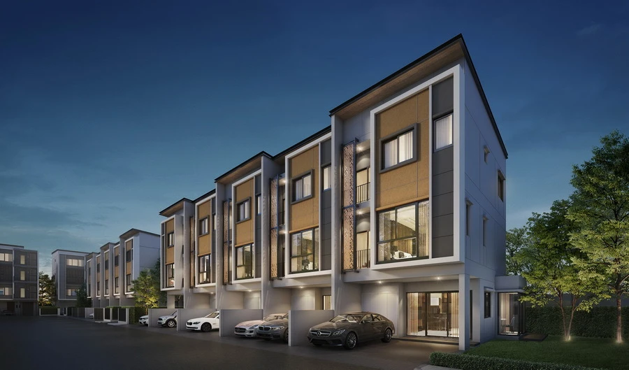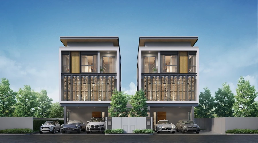 บ้านแฝด 3 ชั้น แบบบ้าน TWIN GRAND บ้านรูปแบบใหม่ที่บ่งบอกถึงความเป็นตัวตนของคุณ ใช้ชีวิตอย่างมีความสุขท่ามกลางความเป็นส่วนตัว สะท้อนรสนิยมผ่านแนวคิดที่ปรารถนาให้ผู้อยู่อาศัย สัมผัสได้ถึงความสุขเต็มเปี่ยมในทุกพื้นที่ใช้สอยตอบโจทย์ทุกไลฟ์สไตล์ของสมาชิกทุกคนอย่างลงตัว ขนาดที่ดินมาตรฐานเริ่มต้น 35 ตร.วา พื้นที่ใช้สอยประมาณ 260 ตร.ม. ประกอบด้วย 3 ห้องนอน 4 ห้องน้ำ 1 ห้องครัว 3 ที่จอดรถ และ 1 ห้องอเนกประสงค์ ที่สามารถปรับแต่งเป็นห้องทำงาน ห้องพระ หรือห้องอ่านหนังสือได้