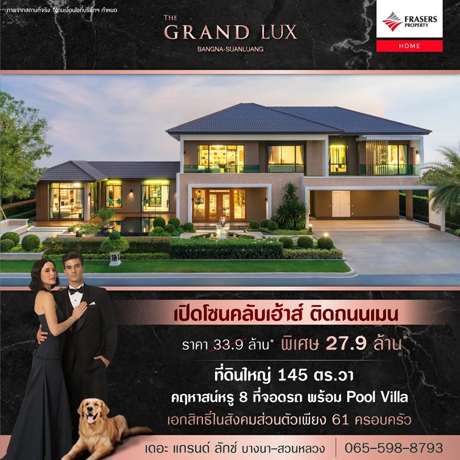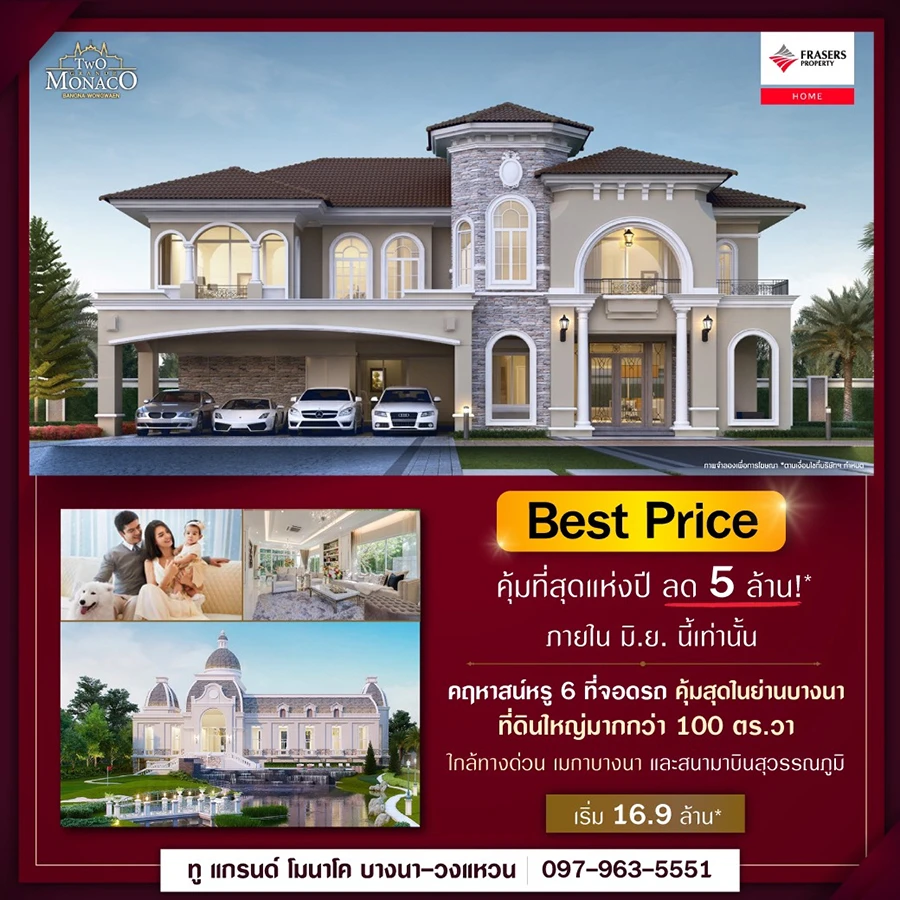 Promotion : 1-30 มิถุนายนนี้ เปิดคฤหาสน์หรูพร้อมตกแต่ง 606 ตร.ม. รุ่นขายดีที่สุดแห่งปีหนึ่งเดียวบนถนนพระราม 2 พิเศษ 55.5 ล้าน*