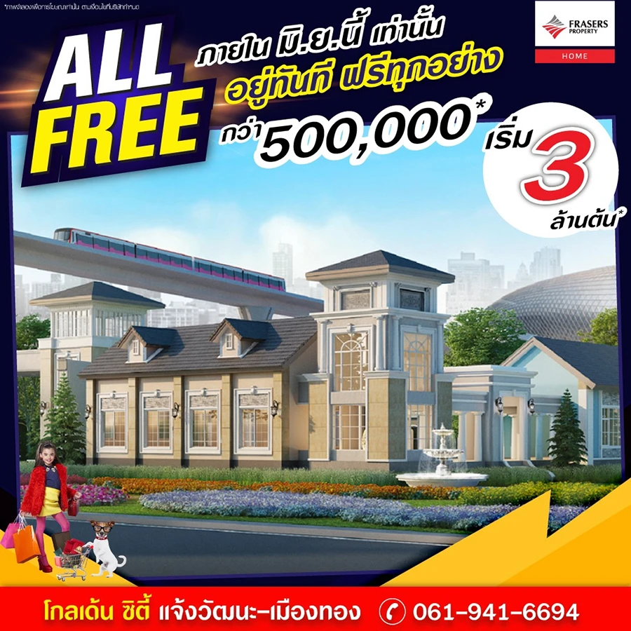 Promotion : 21-30 มิถุนายนนี้ Premium Townhome 3 ชั้น 5 นอน พร้อมฟังก์ชั่นการใช้งานแบบครบครัน คลับเฮาส์หรู และสวนสวยรอบโครงการ ทำเลคุณภาพ ติดถนนใหญ่+ใกล้ทางด่วน ตรงข้ามเมืองทอง ALL FREE อยู่ทันที ฟรีทุกอย่าง กว่า 500,000*เริ่มเพียง 3 ล้านต้น*
