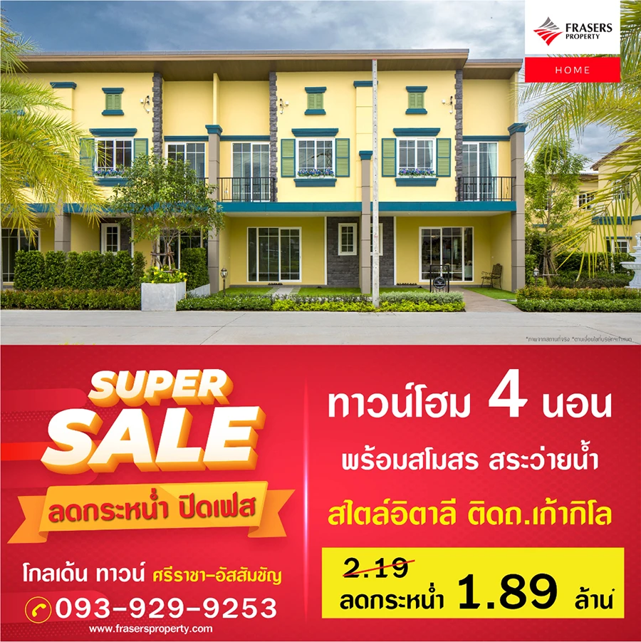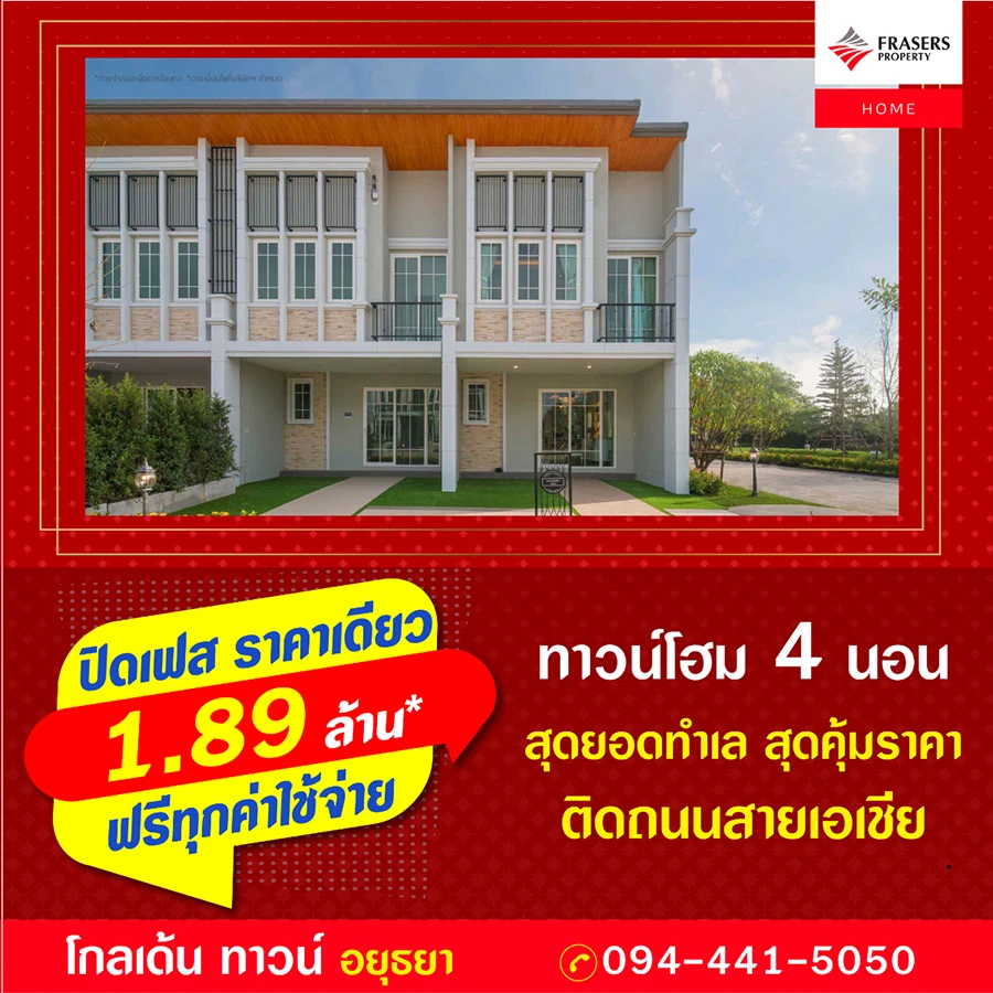 Promotion : 21-30 มิถุนายนนี้ ปิดเฟส ราคาเดียว 1.89 ล้าน* EXTRA FUNCTION เหนือกว่า เพราะให้มากถึง 4 ห้องนอน 3 ห้องน้ำ พร้อมเพิ่มฟังก์ชันพิเศษ อาทิ ครั้งแรกกับห้องพระ ในทาวน์โฮม 2 ชั้น มีห้องอเนกประสงค์ชั้นล่างที่สามารถปรับเปลี่ยนเป็นห้องต่างๆ ได้ตามต้องการ พิเศษกับ GOLDEN KITCHEN นวัตกรรมครัวไทย ฟรี! ทุกค่าใช้จ่าย*