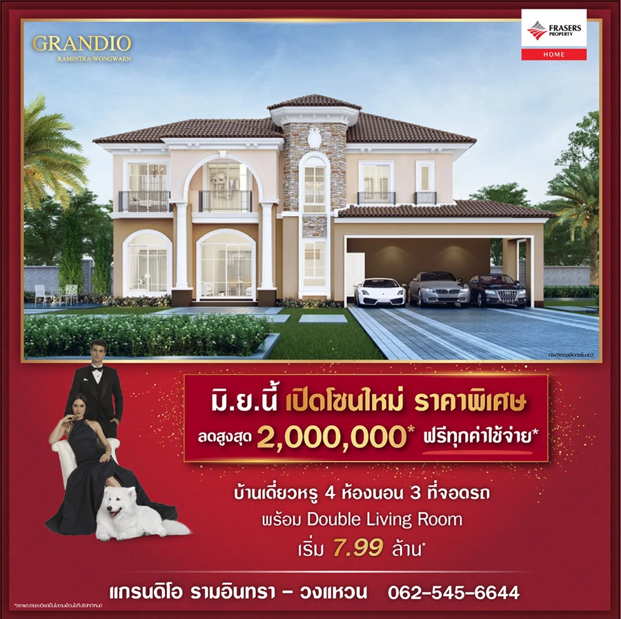 Promotion : 8-30 มิถุนายนนี้ เปิดโซนใหม่ บ้านเดี่ยวแนวคิดใหม่ Modren Luxury Style ที่ลงตัวละคุ้มค่าที่สุด ที่ผสานความเป็น Modern กับความ Classic ราคาพิเศษ! ลดสูงสุดกว่า 2,000,000* ฟรีทุกค่าใช้จ่าย* ลงทะเบียนรับส่วนลดเพิ่มอีก 50,000*