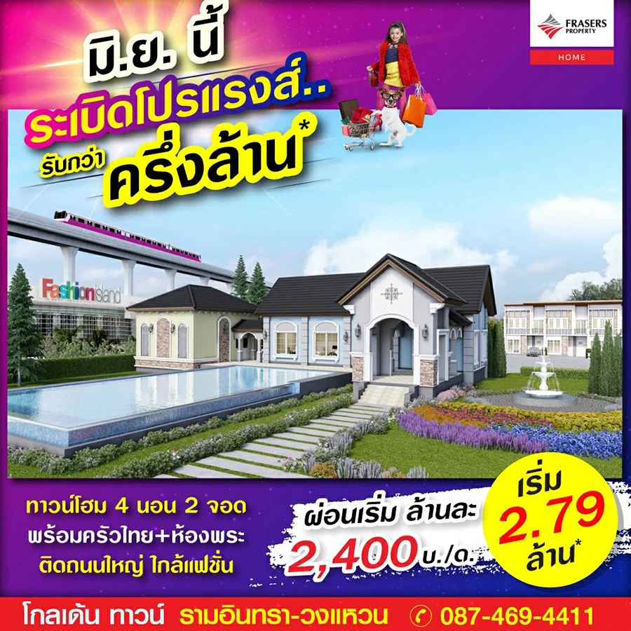 Promotion : 21-30 มิถุนายนนี้ ระเบิดโปรแรงส์ รับกว่าครึ่งล้าน*ผ่อนเริ่มเพียง ล้านละ 2,400 บาท/เดือน* กับทาวน์โฮม EXTRA FUNCTION เหนือกว่า เพราะให้มากถึง 4 ห้องนอน 3 ห้องน้ำ พร้อมเพิ่มฟังก์ชันพิเศษ อาทิ ครั้งแรกกับห้องพระ ในทาวน์โฮม 2 ชั้น มีห้องอเนกประสงค์ชั้นล่างที่สามารถปรับเปลี่ยนเป็นห้องต่างๆ ได้ตามต้องการ พิเศษกับ GOLDEN KITCHEN นวัตกรรมครัวไทย