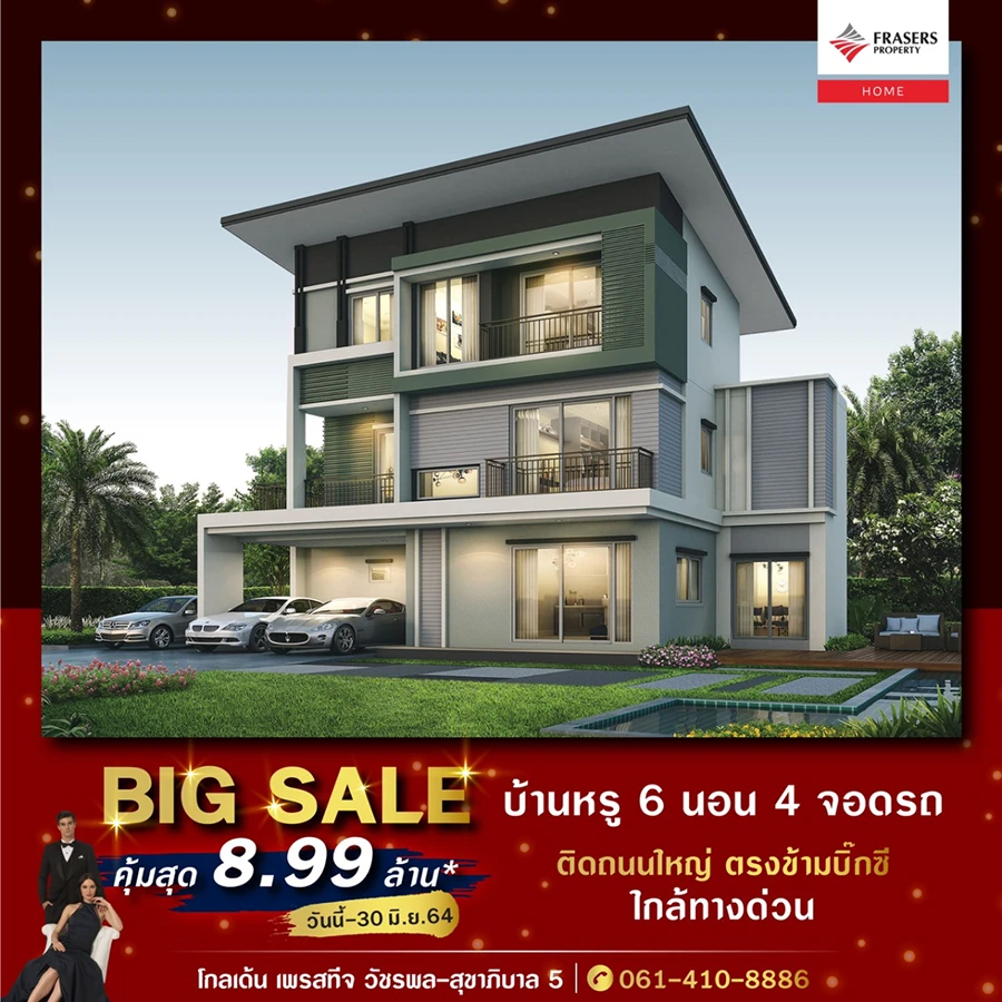 Promotion : 1-30 มิถุนายนนี้ BIG SALE บ้านหรูพร้อมอยู่ 6 ห้องนอน 4 จอดรถ โครงการระดับพรีเมี่ยม หรูที่สุดในย่าน บนทำเลศักยภาพ เดินทางสะดวก ติดถนนใหญ่ ตรงข้ามบิ๊กซี ใกล้ทางด่วนฯ คุ้มสุด 8.99 ล้าน*