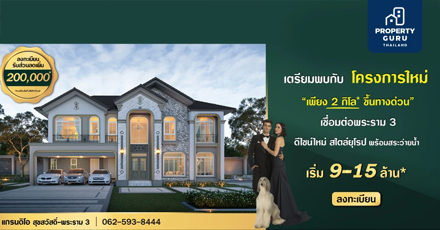 บริษัท เฟรเซอร์ส พร็อพเพอร์ตี้ (ประเทศไทย) จํากัด (มหาชน) เตรียมเปิดตัวบ้านเดี่ยวโครงการใหม่ เตรียมพบกับโครงการใหม่ แกรนดิโอ สุขสวัสดิ์-พระราม 3 (Grandio Suksawat-Rama 3) เพียง 2 กิโลฯ ขึ้นทางด่วน เชื่อมต่อเข้าพระราม 3 พร้อมดีไซน์ใหม่ สไตล์ยุโรป เริ่ม 9-15 ล้านบาท ท่านที่สนใจสามารถลงทะเบียนเพื่อรับส่วนลด 200,000 บาทได้ที่ด้านล่างนี้