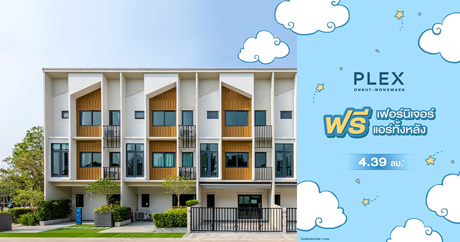 บริษัททาวน์โฮม เพล็กซ์ อ่อนนุช - วงแหวน ทาวน์โฮม 3 ชั้น คุ้มที่สุด ฟรี! เฟอร์นิเจอร์ ฟรี! แอร์ทั้งหลัง ราคา 4.39 ลบ.* สอบถามเพิ่มเติมโทร. 1232 หรือลงทะเบียนรับสิทธิพิเศษ จำกัด