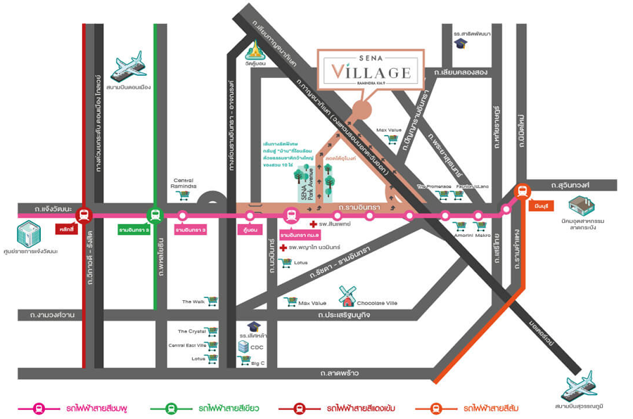ศักยภาพของทำเล "รามอินทรา" ถือได้ว่าเป็นโซนขยายที่มีที่อยู่อาศัยของคนกรุงเทพฯหลังจากมีการพัฒนาทางพิเศษต่างๆทำให้วงแหวนตะวันออกนั้น เดินทางไปพื้นที่ต่างๆ รอบกรุงเทพฯได้สะดวกสบายยิ่งขึ้นใช้เวลาไม่นานสามารถวิ่งเข้าสู่ใจกลางเมืองได้ นอกจากใกล้ทางด่วนยังมีรถไฟฟ้าสายสีชมพูเสริมทัพทำให้ย่าน "รามอินทรา" เรียกได้ว่าเป็นโลเคชั่นที่น่าสนใจสำหรับคนที่กำลังมองหาซื้อบ้านใกล้เมือง โดยโครงการเสนา วิลเลจ รามอินทรา กม.9 ใกล้สถานีรามอินทรา กม.9 ทางโครงการมี Shuttle car รับ-ส่งคอยให้บริการด้วย เดินทางง่าย สะดวก แวดล้อมด้วยห้างสรรพสินค้าแฟชั่นฯ โรงพยาบาล สถานศึกษาต่าง ๆ