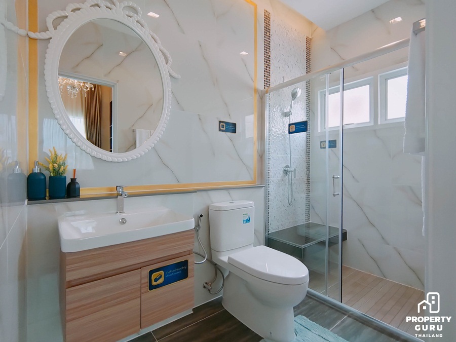 แบบบ้าน GORGEOUS A พื้นที่ใช้สอย 154* ตร.ม. 3 ห้องนอน 3 ห้องน้ำ 1 ห้องครัว 2 ที่จอดรถในร่ม