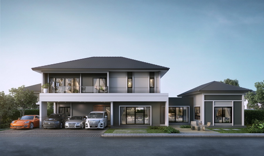 2. ดีไซน์ส่วนพักผ่อนออกจากพื้นที่ส่วนกลางในบ้าน ออกแบบเพื่อตอบทุกความต้องการในอนาคต แยกส่วนห้องอเนกประสงค์ที่ชั้น 1 (ห้องน้ำในตัว) ที่สามารถปรับเป็นห้องนอนผู้สูงอายุ หรือห้องทำงาน พร้อมมุมมองเทควิวสวนหลังบ้าน แยกส่วนเรือนรับรอง (ห้องนอน ห้องนั่งเล่น และห้องน้ำ) แต่ยังคงสามารถเชื่อมต่อกับตัวบ้านได้อย่างสะดวก ตอบโจทย์ทั้งความสงบและความเป็นส่วนตัว โดยสามารถดัดแปลงเป็นพื้นที่เอนกประสงค์ ทั้งโฮมออฟฟิศ สตูดิโอ หรือรองรับการขยายครอบครัวในอนาคต เป็นต้น