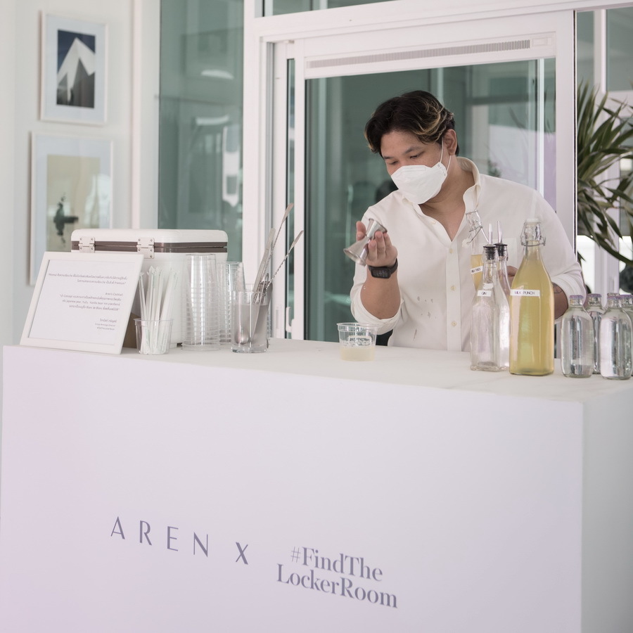 นอกจากนี้ ยังเสิร์ฟเครื่องดื่ม Cocktail สูตรพิเศษ จาก ร้าน Find The Locker Room โดย คุณโรจนัสถ์ เจริญศรี Group Beverage Director ของร้าน กล่าวว่า รู้สึกสนุกที่ได้เข้ามาสร้างสรรค์เครื่องดื่มสูตรพิเศษให้แก่โครงการบ้าน AREN ซึ่งรวมความมินิมอลไว้ในส่วนผสมอย่างกลมกล่อม ให้ความรู้สึกถึงความพรีเมี่ยม และทำให้ทุกคนได้สัมผัสถึงความสดชื่นของเครื่องดื่ม ผ่านการนำเสนอเครื่องดื่มสีขาว Blanc de blanc ที่อยู่ในรูปแบบมินินอลเรียบง่าย ไม่หวือหวา สำหรับผมความมินิมอลคือความพรีเมียม การคัดสรรค์ส่วนผสมไม่ต้องเยอะแต่มีคุณภาพ