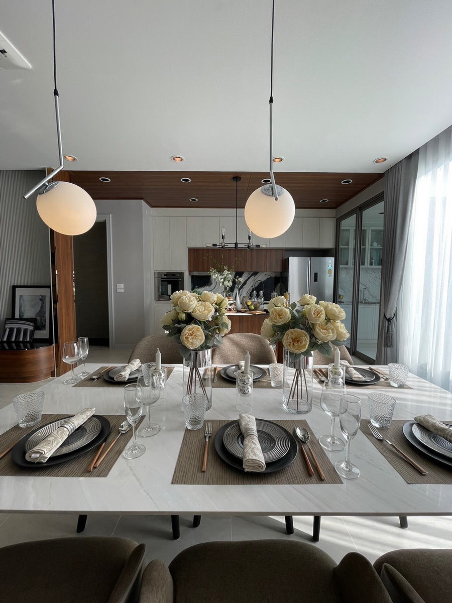 นอกจากเสน่ห์ของแบบบ้านทาวน์โฮมคลาสสิคสไตล์กลิ่นอายโมเดิร์นแล้ว “เวอริทซ์ (VERITZ) สาธุประดิษฐ์ 34” ได้ให้ความสำคัญกับ Space พื้นที่ใช้สอยภายในตัวบ้าน โดยใส่ใจทุกรายละเอียดในทุก ๆ ฟังก์ชั่น นับตั้งแต่ชั้น 1 ที่ตั้งใจออกแบบมาให้เป็นพื้นที่เปิดโล่ง Open plan เพื่อรองรับทุกกิจกรรม และยังเชื่อมต่อห้อง Living Room, Dining Room, Kitchen ให้สมาชิกในครอบครัวได้ใช้เวลาร่วมกันได้อย่างเต็มที่ และบริเวณโดยรอบยังออกแบบเป็นบานกระจกสูงจากพื้นจรดเพดาน ทำให้ช่วงเวลากลางวันบริเวณชั้น 1 ของบ้าน สามารถรับแสงธรรมชาติจากภายนอกได้อย่างเต็มที่ ช่วยประหยัดไฟภายในบ้านและทำให้ตัวบ้าน ดูโปร่งโล่งมากขึ้นด้วย รวมถึงยังเชื่อมต่อกับพื้นที่หลังบ้านที่สามารถจัดทำเป็นมุมสวน หรือ มุมซักล้างได้