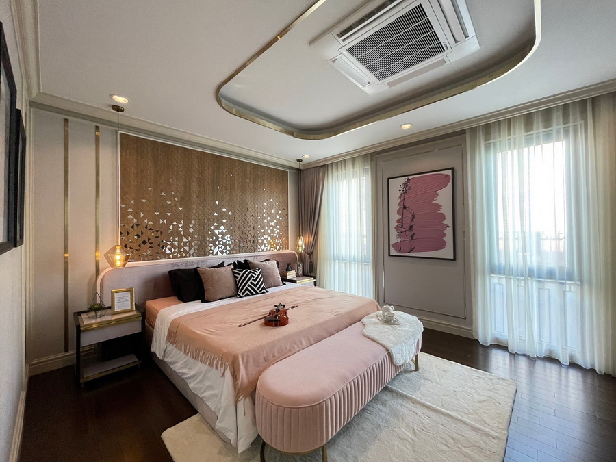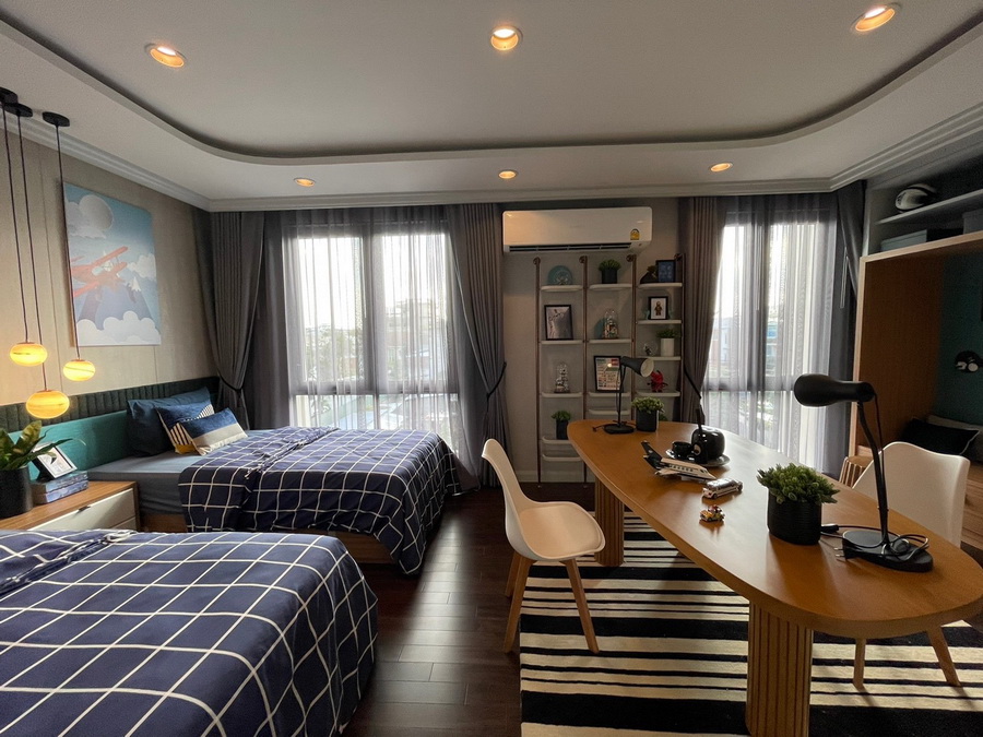 ในส่วนของพื้นที่ใช้สอยภายในห้องนอน เริ่มจาก Master Bedroom ออกแบบให้มีพื้นที่ใช้สอยเยอะถึง 45 ตร.ม. ทำให้สามารถแบ่งห้องออกเป็นสัดเป็นส่วนแยกเป็นโซนห้องนอน และโซน Walk-in closet ได้อย่างลงตัว มีห้องน้ำในตัวมาพร้อมอ่างอาบน้ำและอ่างล้างหน้าแบบแยก His and Her ได้ สำหรับห้องนอนเล็ก ยังมีพื้นที่ใช้สอยขนาดใหญ่รองรับการขยับขยายของสมาชิกในครอบครัว เพื่อการอยู่อาศัยในระยะยาวได้อย่างดี