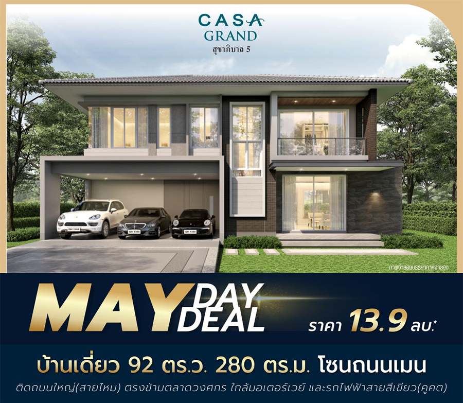 แคมเปญ MAY DAY MAY DEAL คาซ่า แกรนด์ สุขาภิบาล5 บ้านเดี่ยว บนที่ดินประมาณ 92 ตร.ว.* พื้นที่ใช้สอยประมาณ 280 ตร.ม.* #โซนถนนเมน ทำเลติดถนนใหญ่ (สายไหม) ตรงข้ามตลาดวงศกร ใกล้มอเตอร์เวย์ และรถไฟฟ้าสายสีเขียว (สถานีคูคต) ราคา 13.9 ลบ.