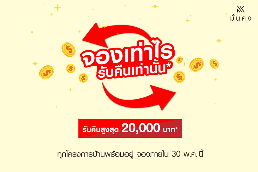 มั่นคงฯ เสิร์ฟโปรโมชั่น "จองเท่าไหร่ รับคืนเท่านั้น" กับทุกโครงการบ้าน-ทาวน์โฮมพร้อมอยู่ รับคืนสูงสุด 20,000 บ.* พร้อมข้อเสนอสุดพิเศษทุกโครงการ รายชื่อโครงการพร้อมอยู่ทุกทำเล