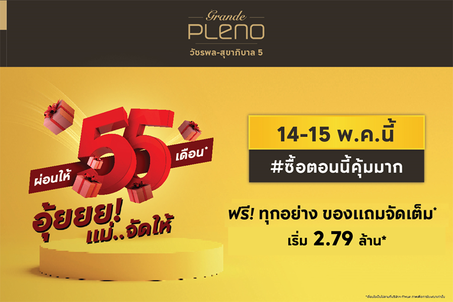 Grande Pleno วัชรพล-สุขาภิบาล5 พิเศษ 2.79 ล้าน 14-15 พ.ค. นี้ อุ้ยยย!! แม่จัดให้ ผ่อนให้นาน 55 เดือน*