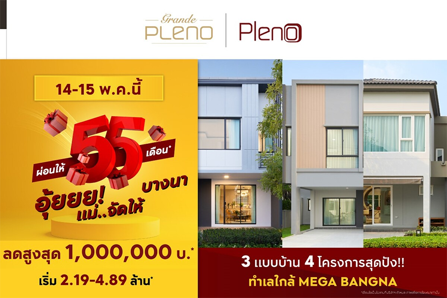 14-15 พ.ค. นี้ อุ้ยยย!! บางนา แม่จัดให้ ผ่อนให้นาน 55 เดือน* 3 แบบบ้าน 4 โครงการ บนทำเลสุดปัง ใกล้ MEGA BANGNA ที่พลีโน่ และ แกรนด์พลีโน่ ทำเลบางนา เริ่ม 2.19-4.89 ล้าน*