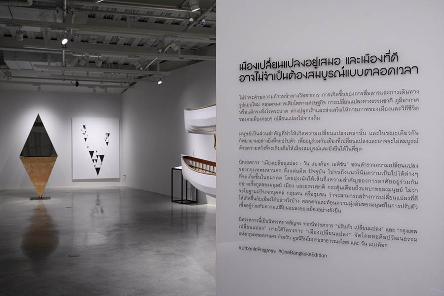 ครั้งนี้ ได้นำผลงานบางส่วนจากนิทรรศการ “เมืองเปลี่ยนแปลง” ที่จัดขึ้นที่หอศิลปวัฒนธรรมแห่งกรุงเทพมหานคร ระหว่างเดือนธันวาคม 2564 - เมษายน 2565 มาจัดแสดงในมุมมองใหม่ โดยคัดเลือกผลงานของนักสร้างสรรค์ 3 ท่านที่นำเสนอให้เห็นถึงการเปลี่ยนแปลงของกรุงเทพฯ ในหลากหลายมิติ และบริบทที่แตกต่างกัน ตั้งแต่อดีต ปัจจุบัน จนถึงอนาคต ตลอดจนความมุ่งมั่นในการสร้างความเปลี่ยนแปลงที่ดีให้กับเมืองนี้ ซึ่งสอดคล้องกับเป้าหมายของวัน แบงค็อก ที่จะร่วมเสริมสร้างศักยภาพของกรุงเทพฯ ให้ก้าวสู่การเป็นจุดหมายปลายทางในฐานะศูนย์กลางของประสบการณ์ระดับโลกสำหรับทุกไลฟ์สไตล์ ที่สร้างสรรค์ขึ้นภายใต้แนวคิดที่คำนึงถึงผู้คนเป็นหลัก ความยั่งยืนด้านสิ่งแวดล้อม และสมาร์ท ซิตี้ เพื่อการใช้ชีวิตในเมืองที่สมบูรณ์แบบในอนาคต”