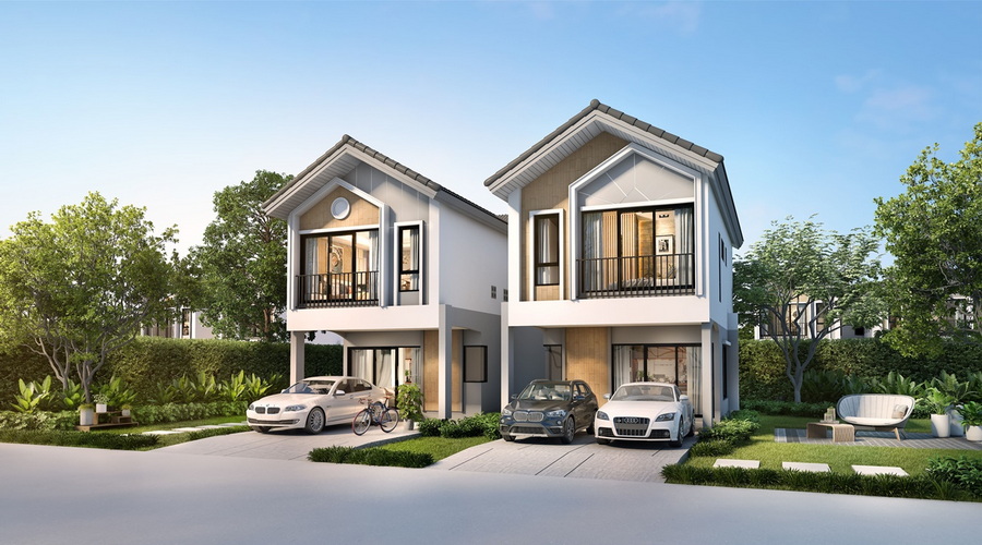พบกับ "บ้านแฝด" ออกแบบรูปลักษณ์และดีไซน์ให้ทันสมัย 2 แบบ 2 สไตล์ เหมาะสำหรับการเริ่มต้นครอบครัวของคนรุ่นใหม่ พื้นที่ใช้สอย 126 และ 154 ตร.ม. 3 - 4 ห้องนอน 3 ห้องน้ำ 2 ที่จอดรถ มาพร้อมห้องนอน Master ขนาดใหญ่ ส่วนรับแขกและส่วนรับประทานอาหารเชื่อมต่อกัน เพิ่มความสะดวกสบายด้วยห้องนอนล่างสำหรับผู้สูงวัยหรือปรับเปลี่ยนเป็นห้องทำงาน มีระเบียงพักผ่อนขนาดใหญ่ที่สามารถจัดสวนได้เชื่อมกับห้องนอน