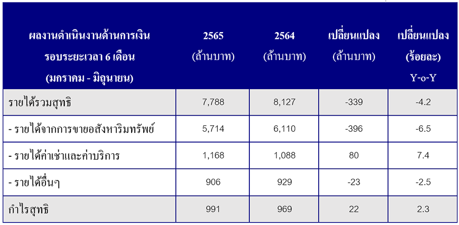 จากการปรับกลยุทธ์ในการดำเนินธุรกิจเพื่อรุกสร้างรายได้ผ่านการนำเสนอผลิตภัณฑ์ใหม่ให้ตอบโจทย์กลุ่มลูกค้าได้อย่างครอบคลุมมากยิ่งขึ้น ทำให้บริษัทฯ สามารถสร้างรายได้รวมในรอบ 3 เดือน (เมษายน-มิถุนายน 2565) ในจำนวน 4,374 ล้านบาท คิดเป็นกำไรสุทธิจำนวน 680 ล้านบาท และคิดเป็นรายได้รวมรอบ 6 เดือน (มกราคม-มิถุนายน 2565) 7,788 ล้านบาท โดยมีกำไรสุทธิ 991 ล้านบาท สามารถรับรู้อัตรา