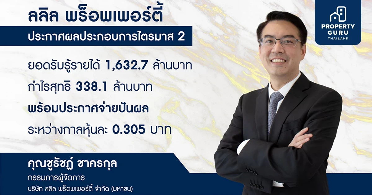 บริษัท ลลิล พร็อพเพอร์ตี้ จำกัด(มหาชน) ประกาศผลประกอบการไตรมาสสอง ปี 2565 มียอดรับรู้รายได้ที่ 1,632.7 ล้านบาท ขยายตัวจากไตรมาสก่อนหน้า 3% แต่หดตัวเล็กน้อยจากช่วงเดียวของปีก่อนที่ 2.5% ทั้งนี้บริษัทยังคงรักษาความสามารถในการบริหารจัดการต้นทุนต่างๆ ได้ดี ในภาวะที่อัตราเงินเฟ้อเร่งตัวขึ้นทั่วโลก โดยบริษัทมีอัตรากำไรขั้นต้นที่ 39.2% รวมถึงการบริหารจัดการค่าใช้จ่ายในการขาย และการบริหาร ได้ดีกว่าค่าเฉลี่ยของอุตสาหกรรม ส่งผลให้ในไตรมาส 2 ปี 2565 นี้ บริษัทมีกำไรสุทธิที่ 338.1 ล้านบาท คิดเป็นอัตราส่วนกำไรสุทธิที่ 20.7%