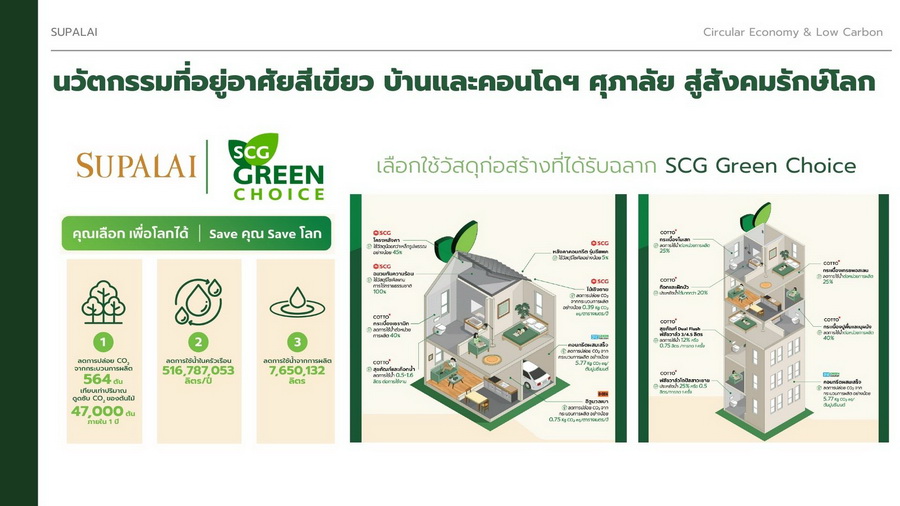 นายกิตติพงษ์ ศิริลักษณ์ตระกูล รองกรรมการผู้จัดการ สายงานก่อสร้างอาคารสูง บริษัท ศุภาลัย จำกัด (มหาชน) หนึ่งในสมาชิกกลุ่ม CECI เปิดเผยว่า บริษัทฯมุ่งพัฒนาธุรกิจด้านอสังหาริมทรัพย์อย่างยั่งยืน ควบคู่กับการมีส่วนร่วมในการพัฒนาสังคมและสิ่งแวดล้อม โดยมีภารกิจในการสร้างสรรค์และพัฒนานวัตกรรมสินค้าและบริการ เพื่อผลประกอบการที่เป็นเลิศโดยคำนึงถึงประโยชน์ของผู้มีส่วนได้เสีย ซึ่งในปี 2565 บริษัทฯได้ตั้งเป้าหมายลดคาร์บอนฟุตพริ้นท์ 25% ภายใน 3 ปี ทำให้ตลอดทั้งปีที่ผ่านมาบริษัทฯเดินหน้าสร้างดีในหลายโปรเจกต์เพื่อเดินหน้าสู่เป้าหมาย อาทิ การจับมือกับพันธมิตรธุรกิจ SCG พัฒนาวัสดุก่อสร้าง SCG Green Choice ที่เป็นมิตรกับสิ่งแวดล้อม และลดการใช้ก๊าซคาร์บอนไดออกไซด์จากกระบวนการผลิตน้อยลง สู่นวัตกรรมที่อยู่อาศัยบ้านและคอนโดฯ ศุภาลัย สู่สังคมรักษ์โลก รวมไปถึงการออกแบบบ้านประหยัดพลังงาน รับลม หลบแดด มุ่งเน้นการใช้พลังงานจากธรรมชาติเพิ่มขึ้น เช่น การใช้แสงธรรมชาติให้เป็นประโยชน์ โดยไม่จำเป็นต้องใช้เครื่องใช้ไฟฟ้ามากเกินความจำเป็น ต่อเนื่องกับโครงการ SOLAR PLUS ที่ร่วมกับธนาคารกสิกรไทย ติดตั้งแผงโซลาร์รูฟให้ลูกบ้านฟรี ช่วยลดค่าไฟฟ้าและคืนพลังงานสะอาดให้กับโลก ตลอดจนมีแผนการติดตั้ง EV charger ที่โครงการทั่วประเทศ เพื่อลดผลกระทบด้านสิ่งแวดล้อม