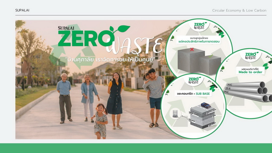 นอกจากนี้บริษัทฯ ยังคงเดินหน้าโครงการ Waste Management อย่างต่อเนื่องเพื่อบริหารเศษวัสดุก่อสร้างที่เกิดขึ้นในกระบวนการผลิตให้เหลือทิ้งน้อยที่สุด เช่น การเลือกใช้ท่อที่ตัดพอดีกับความยาวที่ใช้จริง ลดขนาดลูกปูนทดสอบความแข็งแรงของคอนกรีตแต่ยังคงประสิทธิภาพเท่าเดิม เปลี่ยนพาเลทไม้ที่ใช้ขนย้ายอิฐมวลเบาให้เป็นพาเลทพลาสติกซึ่งทำให้มีอายุการใช้งานที่ยาวนานขึ้น ทำให้ลดการใช้พาเลตไม้ไปได้ถึงกว่า 18,000 ชิ้น เครื่องตัดอิฐมวลเบา (ไร้ฝุ่น) และเครื่องขัดผนังดูดเก็บฝุ่น เพิ่มการแยกขยะภายในไซต์ก่อสร้างซึ่งมีมากถึง 9 ชนิดขยะ และล่าสุดกับวิธีการออกแบบคอนโดมิเนียมเพื่อบริหารจัดการน้ำฝนอย่างมีประสิทธิภาพ โดยบริษัทฯ ออกแบบบ่อหน่วงน้ำที่มีขนาดใหญ่ขึ้น ทำให้สามารถลดการระบายน้ำจากโครงการสู่ถนนและพื้นที่สาธารณะได้ดียิ่งขึ้น ทั้งยังลดภาระการสูบน้ำที่ท่วมขังถนนและพื้นที่สาธารณะของภาครัฐอีกด้วย