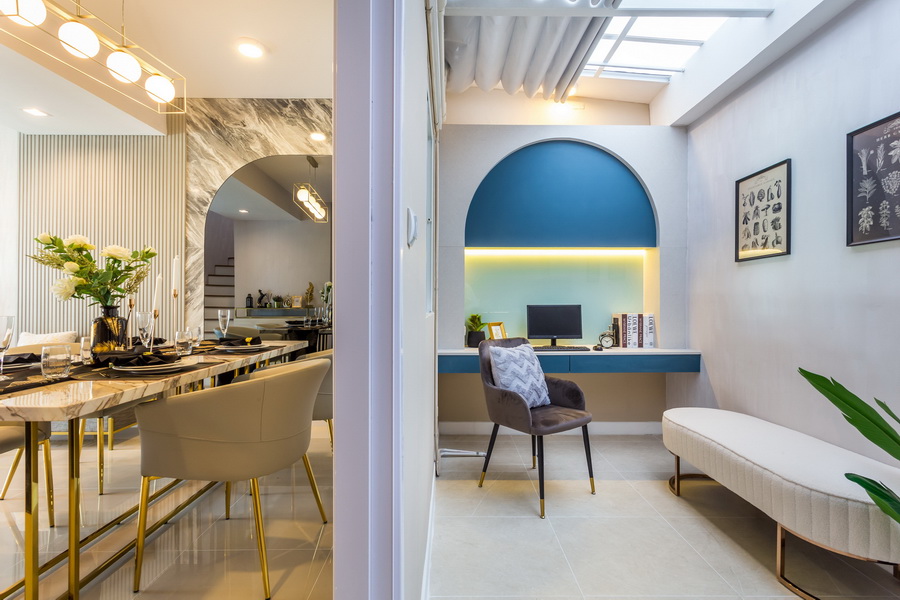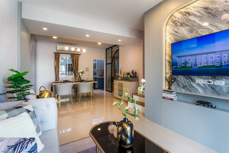 บริเวณด้านล่างมีห้องรับแขกที่มีขนาดกว้างขวาง สามารถแบ่งส่วนเตรียมอาหารไว้เพื่อเพิ่มความสุขในการใช้ชีวิตประจำวันได้อย่างลงตัว ภายในบ้านสามารถปรับฟังก์ชันห้องเอนกประสงค์ให้ตอบโจทย์ทุกไลฟ์สไตล์การอยู่อาศัยของทุกคนในครอบครัวได้อย่างอิสระ ในส่วนกลางบ้านมีโถงบันไดที่สูงโปร่งพร้อมช่องแสงธรรมชาติ ที่จะช่วยในเรื่องอากาศถ่ายเทหมุนเวียนได้อย่างเต็มที่ บริเวณส่วนกลางมีฟิตเนสวิวสวนสไตล์ Provence ช่วยในเรื่องความรื่นรื่นและดูดซับมลพิษทางอากาศ ช่วยป้องกันฝุ่น PM 2.5 ที่เป็นเรื่องใกล้ตัวอีกด้วย นอกจากนี้ยังมีระบบรักษาความปลอดภัยไว้ดูแลตลอด 24 ชั่วโมง ให้คุณใช้ชีวิตอย่างอุ่นใจ