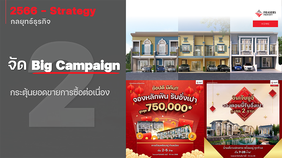 2. เดินหน้าจัด Big Campaign เพื่อกระตุ้นยอดขายตลอดปี 2566 ซึ่งวางแผนจัดแคมเปญทางการตลาดและโปรโมชั่นพิเศษตลอดทั้งปี เพื่อกระตุ้นการตัดสินใจซื้อให้กับผู้บริโภค พร้อมทั้งเป็นการสร้างการรับรู้ และจดจำแบรนด์สินค้าของบริษัทอีกด้วย