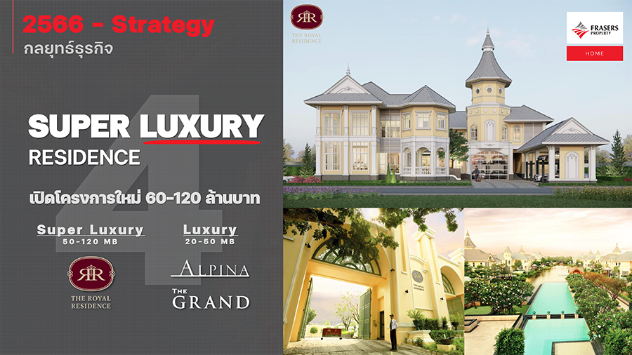 4. ขยายพอร์ตโครงการบ้านเดี่ยวระดับลักชัวรี่ และระดับซูเปอร์ลักชัวรี่ ซึ่งจะเพิ่มสัดส่วนการพัฒนาโครงการบ้านเดี่ยวระดับลักชัวรี่ขึ้นไปในระดับราคา 60-120 ล้านบาทใน 3 แบรนด์หลัก ได้แก่ The Royal Residence (เดอะ โรยัล เรสซิเดนซ์) ซึ่งเป็นแบรนด์ใหม่ รวมถึง Alpina (อัลพีน่า) และ The GRAND (เดอะ แกรนด์) เน้นเจาะกลุ่มครอบครัวคนรุ่นใหม่ที่ต้องการพื้นที่ใช้สอยที่ตอบโจทย์ความต้องการของตนเอง และสามารถปรับเปลี่ยนพื้นที่ได้ตามไลฟ์สไตล์การใช้ชีวิต