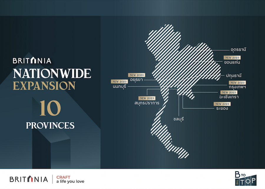 ร่วมบุกตลาดทุกเซ็กเมนท์ กระจายตัวบุกทั้งในกรุงเทพฯและปริมณฑล อาทิ สมุทรปราการ นนทบุรี ปทุมธานี เขตพัฒนาพิเศษภาคตะวันออก หรือ EEC อย่างชลบุรี ระยอง ฉะเชิงเทรา ตลอดจนหัวเมืองใหญ่ในต่างจังหวัด นำร่องที่ขอนแก่นด้วยบริทาเนีย มะลิวัลย์ และบริทาเนีย อยุธยา
