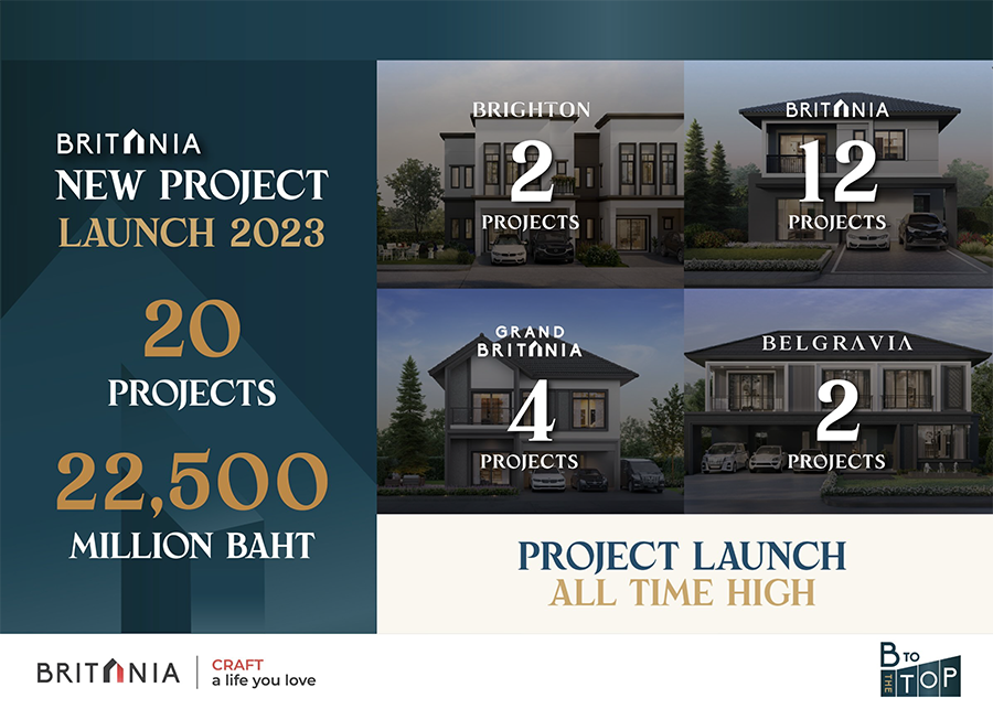 สำหรับบริษัท บริทาเนีย จำกัด (มหาชน) หรือ BRI เป็นผู้พัฒนาบ้านจัดสรรภายใต้คอนเซปต์ CRAFT a life you love ดีที่สุดคือใช้ชีวิตในแบบที่รัก พัฒนาทั้งบ้านเดี่ยว บ้านซีรีส์ใหม่ ทาวน์โฮม ครอบคลุมผู้บริโภคทุกเซ็กเมนท์ ภายใต้ 4 แบรนด์หลัก ได้แก่ 1. เบลกราเวีย (Belgravia) บ้านเดี่ยวลักชัวรี ระดับราคา 20-50 ล้านบาท 2.แกรนด์ บริทาเนีย (Grand Britania) บ้านเดี่ยวและบ้านแฝดระดับ High-End ราคา 8-20 ล้านบาท 3. บริทาเนีย (Britania) บ้านเดี่ยว บ้านแฝด และทาวน์โฮม ระดับ Mid-end ราคา 4-8 ล้านบาท และ 4.ไบรตัน (Brighton) บ้านแฝด และทาวน์โฮม ระดับเริ่มต้น (Entry) ราคา 2.5-4 ล้านบาท โดย ณ สิ้นปี 2565 พัฒนาโครงการมาแล้วทั้งสิ้น 30 โครงการ คิดเป็นมูลค่าโครงการสะสม 36,449 ล้านบาท