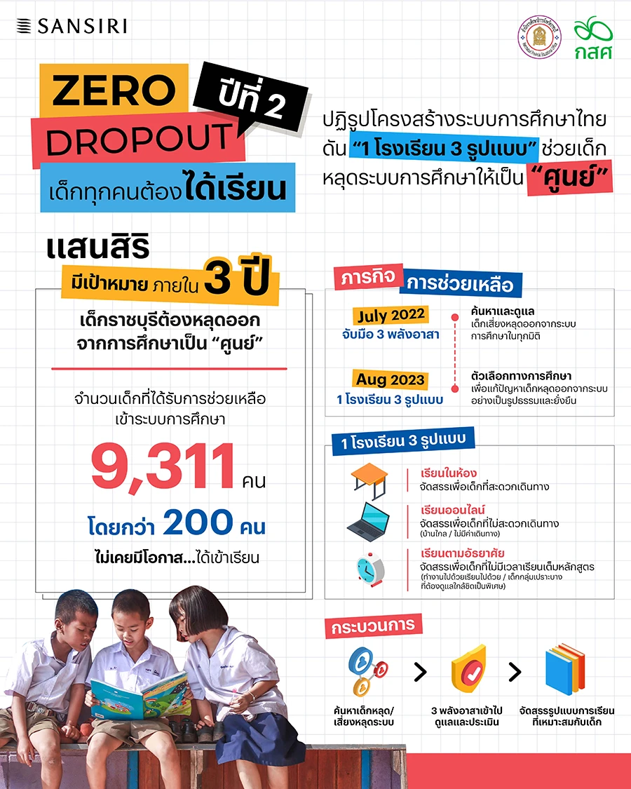 ติดตามข่าวสารของโครงการ ‘Zero Dropout เด็กทุกคนต้องได้เรียน’ จากแสนสิริได้ทาง Facebook : Sansiri PLC,https://blog.sansiri.com/zero-dropout-main/ และ #SANSIRI #ZeroDropout #YOUAreMadeForLife