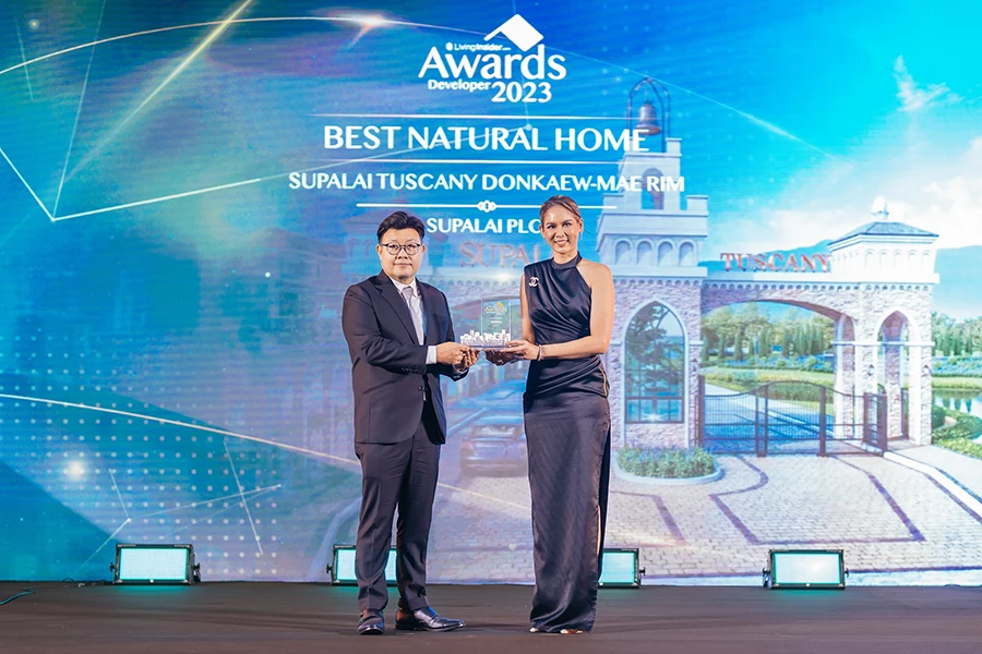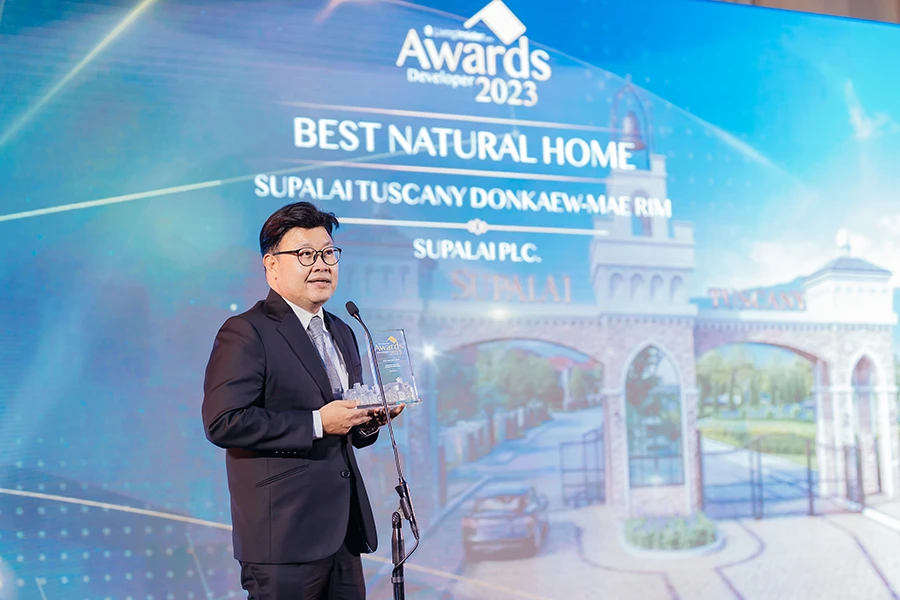 นายชัยจักร วทัญญู ผู้อำนวยการฝ่ายอาวุโส ฝ่ายสร้างสรรค์และพัฒนาผลิตภัณฑ์ บริษัท ศุภาลัย จำกัด (มหาชน) รับรางวัลแห่งความสำเร็จในงาน LIVINGINSIDER AWARDS 2023 สาขา BEST NATURAL HOME จากโครงการ ศุภาลัย ทัสคานี วัลเล่ย์ ดอนแก้ว - แม่ริม (Supalai Tuscany Donkaew-Maerim) เป็นอีกหนึ่งในรางวัลที่ยืนยันฝีมือการพัฒนาที่อยู่อาศัยระดับมืออาชีพ เพื่อให้ได้บ้าน #StandardดีQualityเดียวกัน ทุกหลังทั้งประเทศ โดยงานประกาศผลรางวัล LIVINGINSIDER AWARDS 2023 จัดขึ้นเพื่อเป็นการเชิดชูผลงานของ "ผู้ประกอบการและนายหน้าอสังหาริมทรัพย์” ที่สามารถทำผลงานได้ยอดเยี่ยม ท่ามกลางบรรยากาศเฉลิมฉลองสุดเอ็กซ์คลูซีฟ ณ โรงแรม Swissotel Bangkok Ratchada