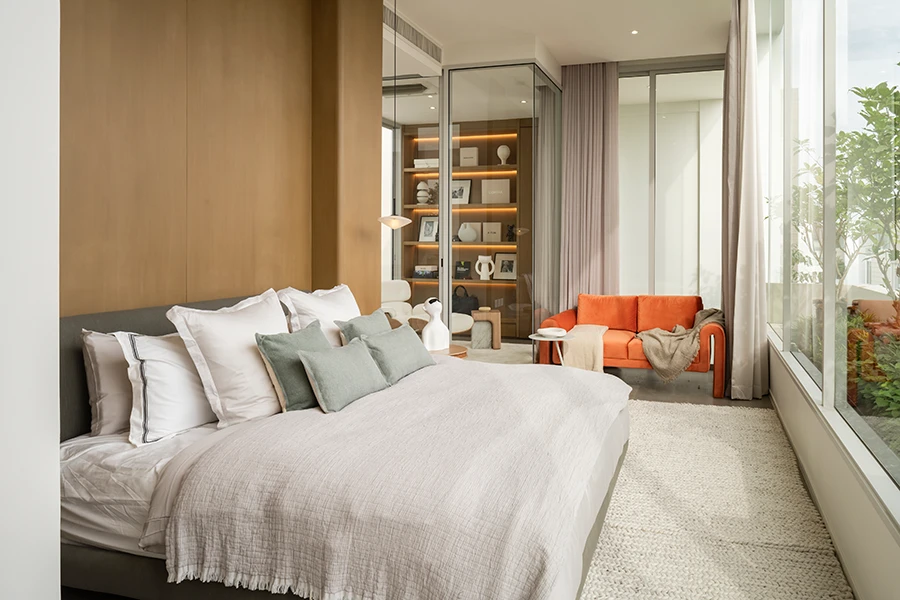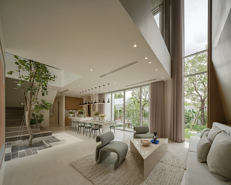 Rare Design: เชื่อมต่อคนกับธรรมชาติ ด้วยการออกแบบที่เหนือระดับ โดย คุณปานดวงใจ รุจจนเวท สถาปนิกผู้ออกแบบโครงการ และ Co-founder บริษัท แอนโนนีม จำกัด ที่ออกแบบแนวคิดพื้นฐานตอบโจทย์กลุ่มคนที่ต้องการความพอดี เชื่อในความเรียบง่าย โดยคำว่า ‘Terra’ หมายถึง ผืนดิน ผู้ออกแบบจึงตั้งใจวางคอนเซปต์ให้ดูเป็นบ้านที่ค้นพบความสงบแม้จะอยู่ในใจกลางเมืองและมอบประสบการณ์การอยู่อาศัยที่เป็นหนึ่งเดียวกับธรรมชาติได้อย่างลงตัว โดยคำนึงถึง 3 องค์ประกอบคือ CONNECTING การกระชับสัมพันธ์ระหว่างสมาชิกในครอบครัว ผ่าน TRIPLE-VOLUME SKYLIGHT ที่เชื่อมโยงกับต้นไม้กลางบ้าน เพื่อเป็นจุดศูนย์กลางของบ้านในการเชื่อมต่อทุกคนในบ้านให้มองเห็นกันได้ตลอดเวลา, GROUNDING การสร้างสิ่งแวดล้อมให้ผู้อยู่อาศัยสงบและกลับมาสู่จุดสมดุลเหมือนได้กลับมาชาร์จพลังชีวิตทุกครั้งที่กลับบ้าน ผ่านองค์ประกอบของธรรมชาติทั้ง แสงธรรมชาติ การหมุนเวียนอากาศและพื้นที่สีเขียวที่เชื่อมต่อกันตั้งแต่หน้าบ้าน กลางบ้านจนไปถึงหลังบ้านเพื่อสร้างบรรยากาศที่เงียบสงบและเป็นส่วนตัว, SELF SUFFICIENT การอยู่อาศัยแบบพึ่งพาตัวเอง ด้วยการออกแบบที่ใช้พลังงานน้อยลง พึ่งพาธรรมชาติมากขึ้นเพราะสามารถเปิดรับแสงแดด สายลม อากาศบริสุทธิ์จากพื้นที่สีเขียวในบ้านได้มากขึ้น ผ่านการออกแบบช่องเปิดต่างๆ และ SKYLIGHT และกระจกบานใหญ่ภายในบ้านรับแสงธรรมชาติได้มากขึ้น