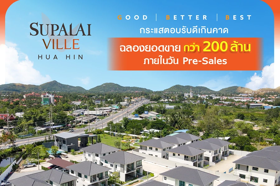 บริษัท ศุภาลัย จำกัด (มหาชน) โดย นายไตรเตชะ ตั้งมติธรรม กรรมการผู้จัดการ ขอขอบคุณทุกการตอบรับอย่างอบอุ่นจากลูกค้าทุกท่านที่สนใจ โครงการ ศุภาลัย วิลล์ หัวหิน และให้ความเชื่อมั่นในแบรนด์ “ศุภาลัย” ถือเป็นการบุกตลาดแนวราบโครงการแรกใน อ.หัวหิน โดยพร้อมให้ลูกค้าเยี่ยมชมบ้านตัวอย่างเป็นทางการ ซึ่งได้รับความสนใจจากลูกค้าในพื้นที่เป็นจำนวนมาก มีการสอบถามข้อมูลโครงการก่อนวันเปิดขาย และมีการนัดหมายล่วงหน้าเพื่อเข้าเยี่ยมชมโครงการในรอบเปิดตัว Pre-Sales เมื่อวันที่ 9 -10 กันยายน ที่ผ่านมา ส่งผลให้ในวันนั้น กวาดยอดขายไปได้กว่า 200 ล้านบาท หลังเปิดขายโครงการเป็นทางการเพียง 2 วันเท่านั้น! ถือเป็นปรากฏการณ์ และอีกหนึ่งก้าวสำคัญจากความไว้วางใจของลูกค้า พร้อมสานต่อการพัฒนาโครงการที่อยู่อาศัยในอ.หัวหิน ในอนาคตต่อไป