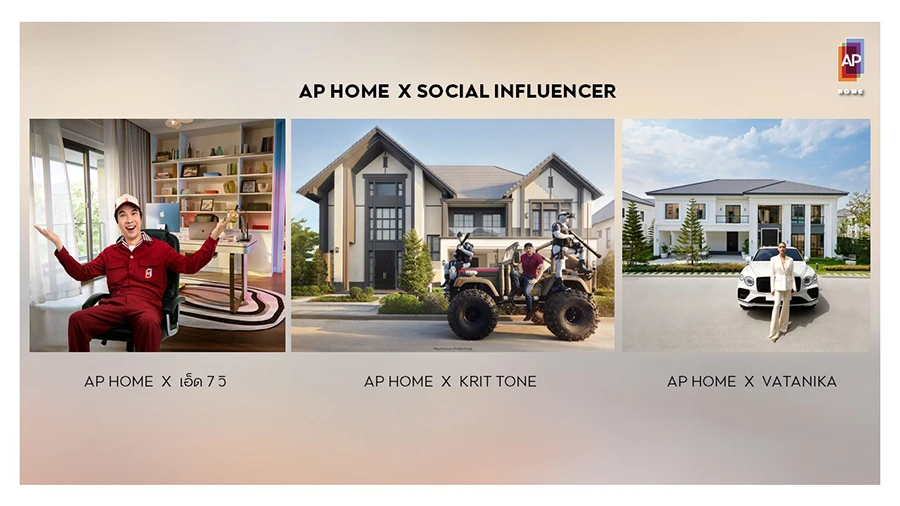 • รุกสร้าง Brand Engagement ระหว่างแบรนด์บ้านเดี่ยวกับผู้บริโภครุ่นใหม่ เปลี่ยนการสื่อสารจาก WHAT มาตอบโจทย์ WHY ชี้ถึงคุณค่าที่บ้านเดี่ยวเอพีมอบให้ ผ่าน Social Influencer หลากหลายวงการ