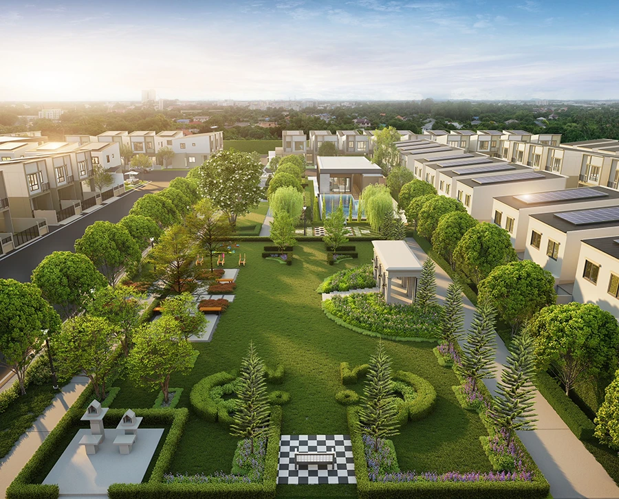 เริ่มต้นและครอบครัวขยายได้อย่างเพียงพอ หน้ากว้าง 7.7 เมตร สามารถจอดรถได้ 2 คัน แบบสบายๆ พร้อมติดตั้งโซลาร์รูฟ และที่ชาร์จรถ EV Ready ให้บ้านทุกหลัง นอกจากตัวบ้านที่มีเอกลักษณ์โดดเด่นแล้ว ยังมีพื้นที่ส่วนกลางที่ครบถ้วน ได้มาตรฐานและมีความปลอดภัยสูง ทั้ง ฟิตเนส สระว่ายน้ำสำหรับเด็กและผู้ใหญ่ สวนหย่อม สนามเด็กเล่น และลานกิจกรรมที่ใช้เป็นพื้นที่สันทนาการสำหรับครอบครัวได้ ทั้งยังแวดล้อมด้วยแหล่งอำนวยความสะดวกที่ไม่ไกลจากโครงการ อาทิ เฟิรส์ อเวนิว คอมมูนิตี้มอลล์แห่งใหม่ เซ็นทรัล เวสต์เกต และ โลตัสบางบัวทอง จุดเด่นของโครงการที่ลูกบ้านจะได้รับ คือ ประสบการณ์เดินทางแบบไร้รอยต่อด้วย Smart Mobility อย่าง V Move ให้บริการ Shuttle service รับ-ส่งลูกบ้านที่จุดขนส่งสาธารณะ เช่น เซ็นทรัล เวสต์เกต และ MRT สายสีม่วง สถานีคลองบางไผ่ ซึ่งมีกำหนดอัตราค่าโดยสารใหม่ 20 บาทตลอดสาย ที่ผ่านมติเห็นชอบจากบอร์ด รฟม.เรียบร้อยแล้ว โดยคาดว่าจะเริ่มวันแรกในวันที่ 1 ธันวาคม 2566 นี้