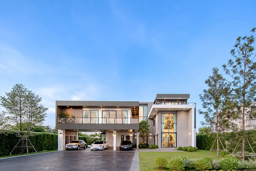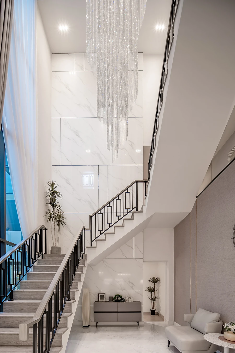 จุดเด่นบ้าน BELINDA แบบบ้าน 3 ชั้น บ้านเดี่ยวหลังใหญ่บนที่ดินขนาดใหญ่ พื้นที่ใช้สอยประมาณ 800 เมตร 6 ห้องนอน 7 ห้องน้ำ ที่จอดรถมากกว่า 7 คัน มีห้องแม่บ้านแยกเป็นสัดส่วน แบ่งโซนพื้นที่ใช้งานภายในบ้านได้อย่างลงตัวทั้งโซนครอบครัว โซนรับประทานอาหาร โซน Living Area ออกแบบเพดานสูงโปร่ง Double Volume ได้ความโปร่ง โล่งสบาย Inner Courtyard เชื่อมต่อพื้นที่ภายในบ้านกับธรรมชาติด้านนอก สระว่ายน้ำส่วนตัว ภายในบ้านทุกหลัง โดดเด่นด้วยห้องนอน Master Bedroom แบบเพนท์เฮาส์ขนาดใหญ่เต็มชั้น แบ่งเป็นส่วนห้องนอน โซน Living Area โซน Working Area ส่วน Walk-in Closet ขนาดใหญ่เชื่อมต่อกับห้องน้ำ ได้พื้นที่สำหรับเก็บเสื้อผ้า รองเท้า ขนาดใหญ่ และยังได้ระเบียงขนาดใหญ่สามารถจัดมุมสวนเล็กๆ ส่วนตัว หรือจะวาง Coffee Table ไว้จิบกาแฟยามเช้า ด้วยราคาเริ่มต้น 26 ล้านบาท