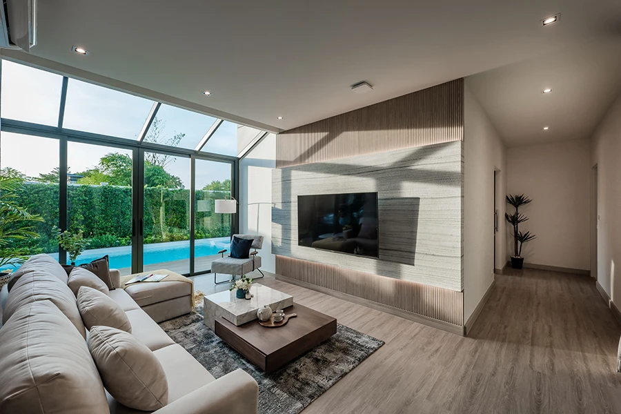 บ้านบุญยกร พรีเมียม เลค พาร์ค บ้านเดี่ยวสุดหรู พร้อมสระว่ายน้ำส่วนตัวทุกหลัง บ้านทุกหลังปลูกบนที่ดินแปลงใหญ่ ด้านหน้าบ้านเปิดรับวิวทะเลสาบ เหมือนคุณได้พักผ่อนในบรรยากาศที่สงบและเป็นส่วนตัว โดยบ้านทุกหลังออกแบบมาพร้อมสระว่ายน้ำ สามารถออกกำลังกายได้จากบ้านคุณ และสามารถจัดพูลปาร์ตี้ในบรรยากาศส่วนตัว รองรับทุกไลฟ์สไตล์ทั้งสายเฮลธ์ตี้ และสายปาร์ตี้ นอกจากนี้ยังออกแบบให้มี Inner Courtyard เชื่อมต่อพื้นที่สีเขียวให้คุณได้ใกล้ชิดกับธรรมชาติมากยิ่งขึ้น พร้อมเปิดรับแสงธรรมชาติทำให้ภายในบ้านโปร่งระบายอากาศได้ดี พร้อมเปิดให้ชมบ้านตัวอย่างหลังใหญ่ BELINDA บ้าน 3 ชั้น พื้นที่ใช้สอยประมาณ 800 ตารางเมตร ออกแบบฟังก์ชันบ้านเพิ่มพื้นที่ความสุขให้ทั้งครอบครัว ทั้งหมด 6 ห้องนอน 7 ห้องน้ำ แบ่งพื้นที่โซนครอบครัว โซนรับประทานอาหาร และยังได้พื้นที่สวนรอบบ้านขนาดใหญ่สามารถทำกิจกรรมได้หลายรูปแบบ